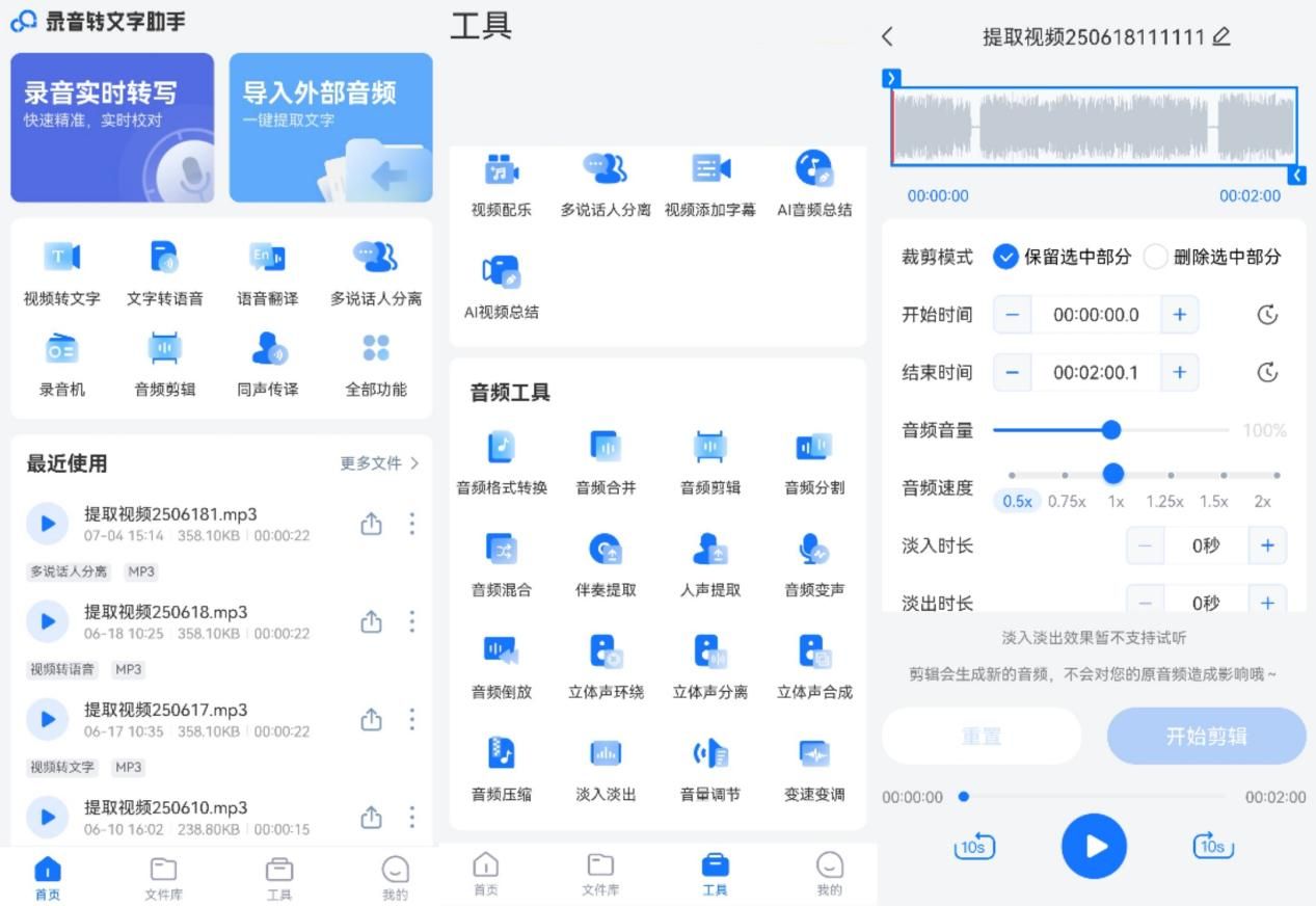 别看它只是一款手机App,功能却毫不妥协。它提供了两种极为灵活的裁剪模式,无论你是需要快速地掐头去尾,还是想从长音频中精准地“挖”出核心片段,都能直观地完成操作。更进一步,你还可以对音频进行专业级的精细打磨:自由调节音量大小,让听感更舒适;掌控播放的节奏快慢,打造你想要的叙事节奏;甚至能一键添加自然的淡入淡出效果,让每一次剪辑的衔接都如丝般顺滑,毫无痕迹。