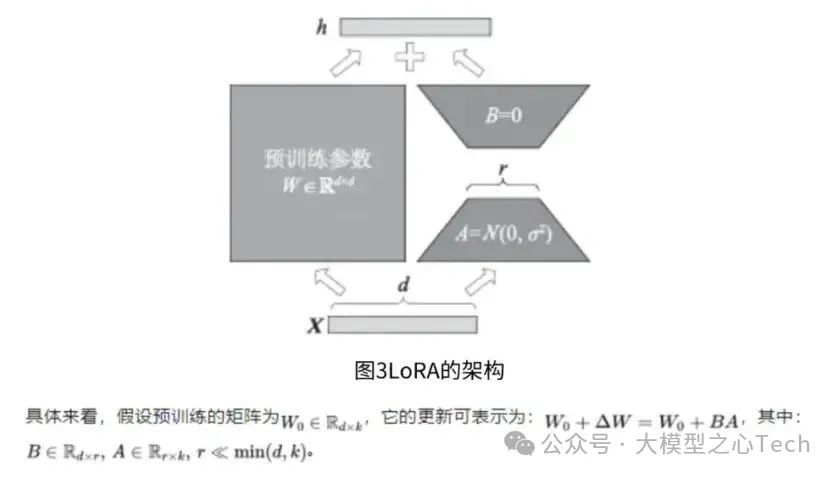 在训练过程中,只需要固定原始模型的参数,然后训练降维矩阵A和升维矩阵B,如图3所示