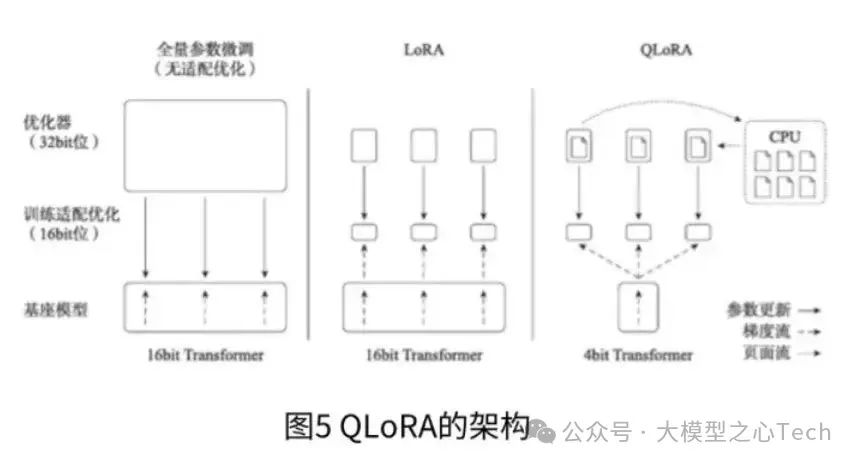 TimDettmers等研究者在论文“QLORA:Efficient Finetuning ofQuantized LLMs”中提出了一种高效的模型微调方法–OLORA,如图5所示