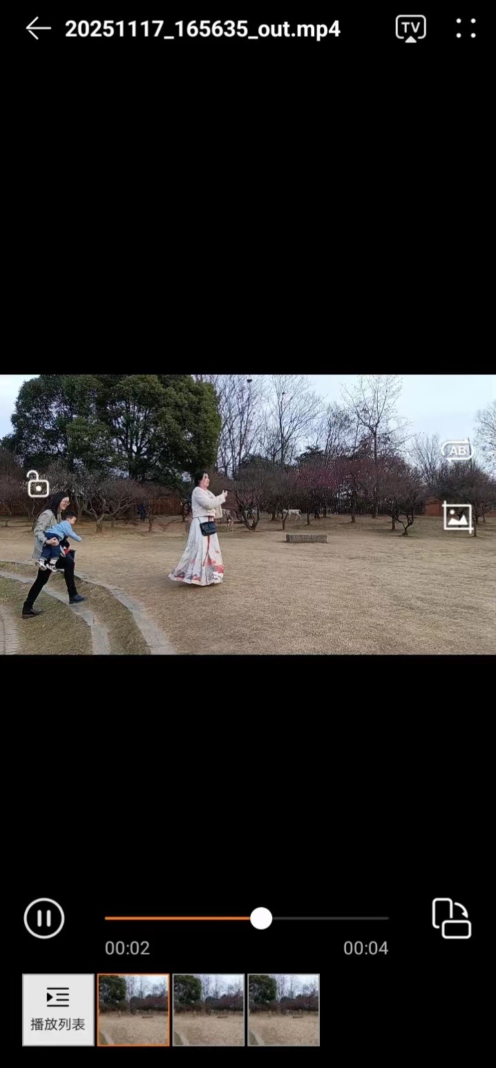 裁剪之后的视频片段默认放在App安装路径下的files目录,完整路径为“我的手机/Android/data/com.joe.epmediademo/files/Download/out.mp4”。稍等片刻EpMedia也会自动跳到系统的默认播放器界面,开始播放剪辑好的视频片段如下图所示:
