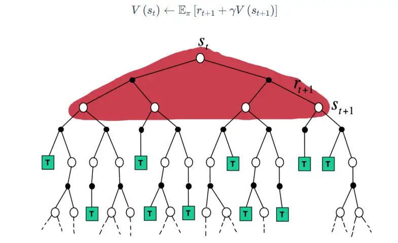 V(st)=α(Rt+1+γV(st+1))+(1−α)V(st)