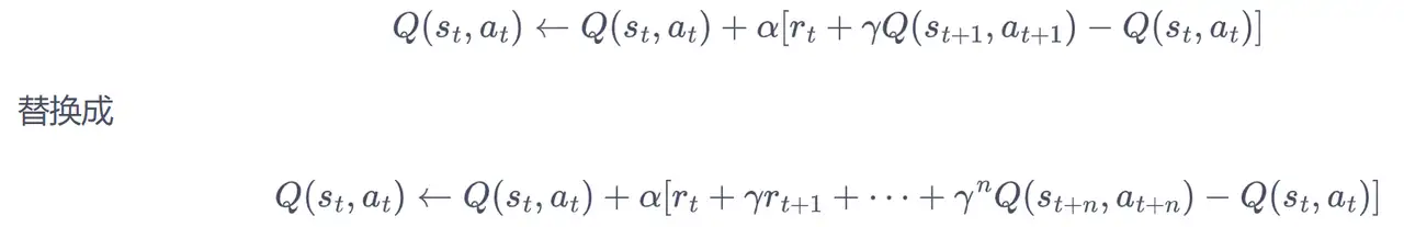 td_error = r + gamma * Q_table[s1, a1] - Q_table[s0, a0] Q_table[s0, a0] += alpha * td_error
