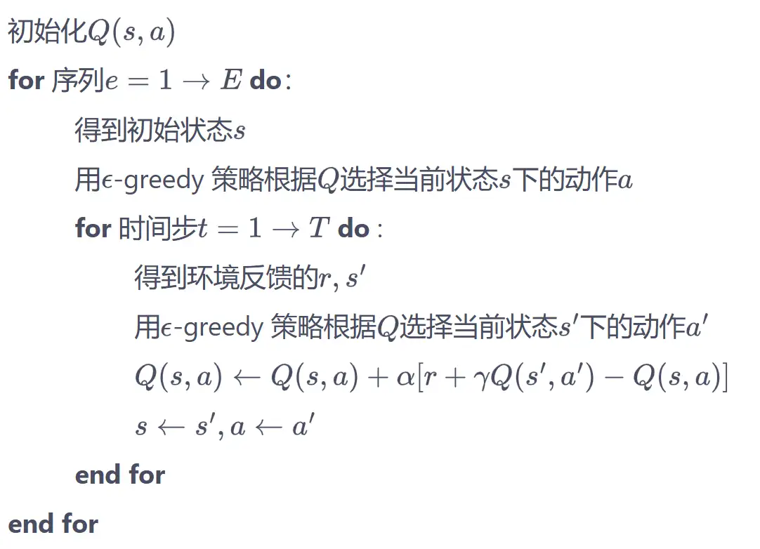 SARSA 具体算法如下: