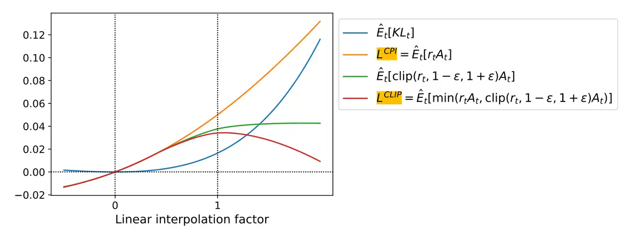 偏离 1 太多,就会被裁剪到 [1−ϵ,1+ϵ]