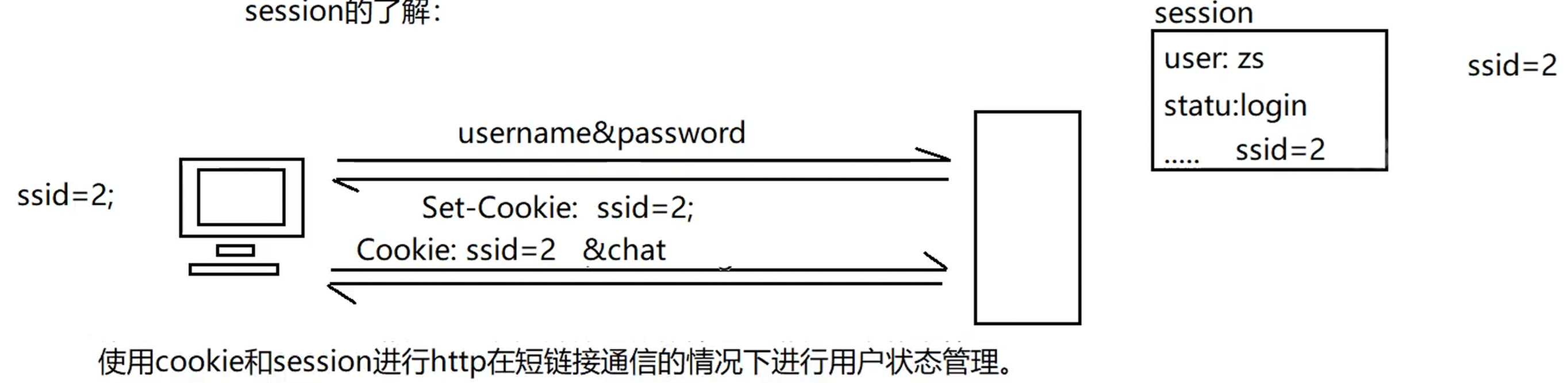 - 要注意的是,这个服务器上管理的session都会有过期时间,超过时间了,就会将对应的session删除,每次客户端与服务器的通信都需要延长session的过期时间;