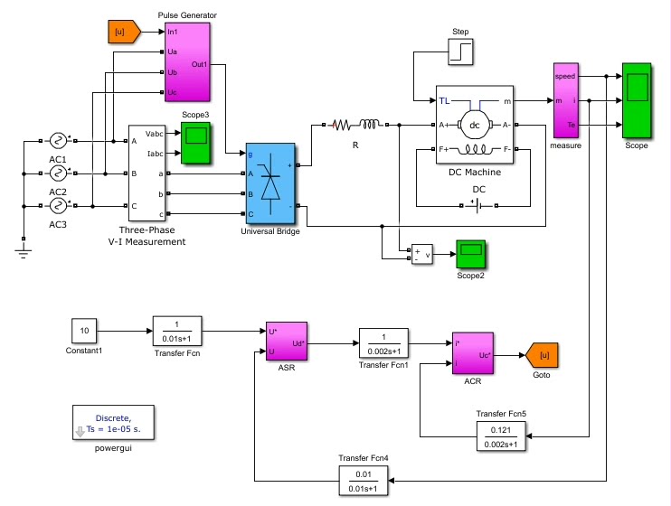 转速外环ASR(Automatic Speed Regulator)和电流内环ACR(Automatic Current Regulator)均采用PI控制。PI控制可是经典中的经典啦。简单说,比例(P)环节能快速响应偏差,让系统尽快接近目标值;积分(I)环节则能消除稳态误差,让系统最终稳定在目标值上。