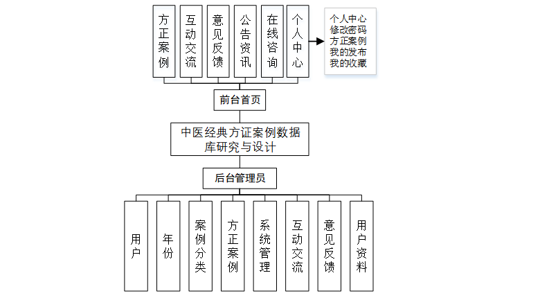 中医经典方证案例数据库研究与设计综合网络空间开发设计要求。目的是通过网络平台将传统管理方式转换为在网上管理,完成中医经典方证案例数据库研究的方便快捷、安全性高障,目标明确。中医经典方证案例数据库研究与设计可以将功能划分为管理员使用的功能和用户使用的功能。