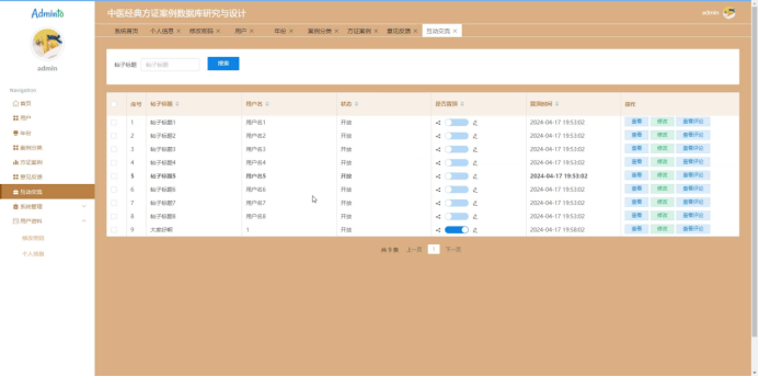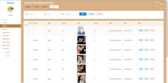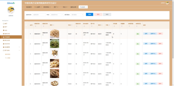 当“数据”成为中医药走向现代化的最后一道门槛,散落在《伤寒论》《金匮要略》等古籍里的海量方证案例却始终缺乏统一、可计算的结构。把纸页上的“一方一证”搬进数据库,让千年经验变成可检索、可统计、可演算的知识,是本系统诞生的初衷。平台以 SpringBoot 为骨架、MySQL 为仓库、Vue 为门户,将历代医案拆成最小知识单元后重新组装,形成一张可随时扩展的“数字经络”。系统核心功能方证案例管理:录入