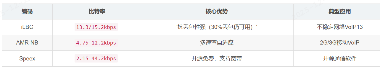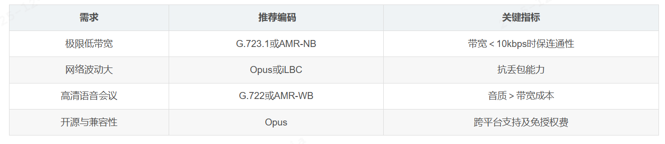 场景:传统PSTN网络、基础VoIP系统(需充足带宽)