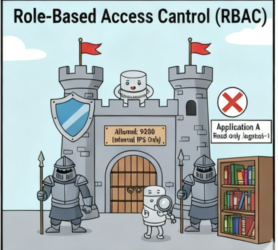 应用 A 只需要读 logstash-* 索引?那就只给它 reader 角色和对应索引的读权限。