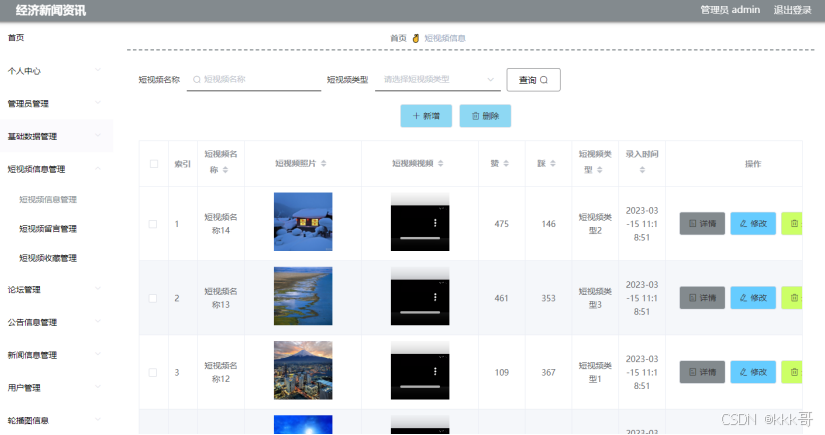 图5.2 短视频信息管理页面