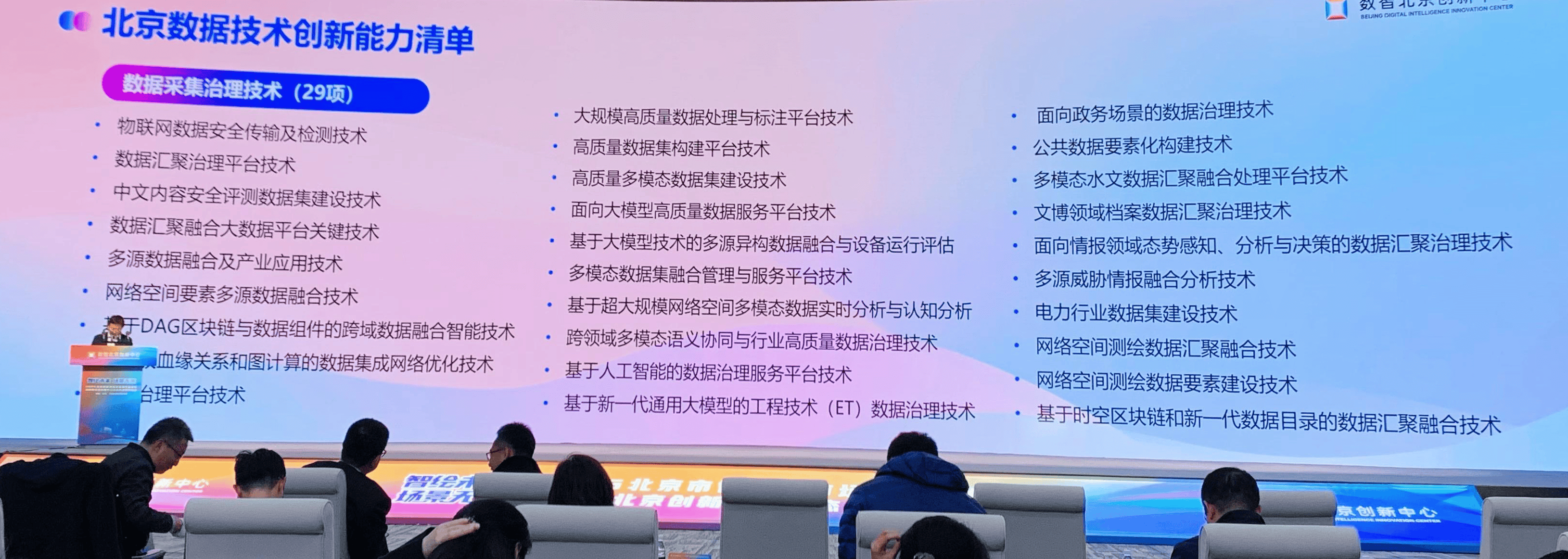 近日,2025北京市智慧城市场景创新发布暨数智北京创新中心生态共建系列活动在京隆重举行,备受瞩目的《北京市数据技术创新能力清单》正式发布。中科天玑数据科技股份有限公司凭借其在多模态数据智能处理与网络空间认知领域的深厚积累,其“跨领域多模态语义协同与行业高质量数据治理” 与 “超大规模网络空间多模态数据实时分析与认知服务”两项核心技术攻关项目成功入选清单,成为赋能首都智慧城市建设的关键技术供给方。