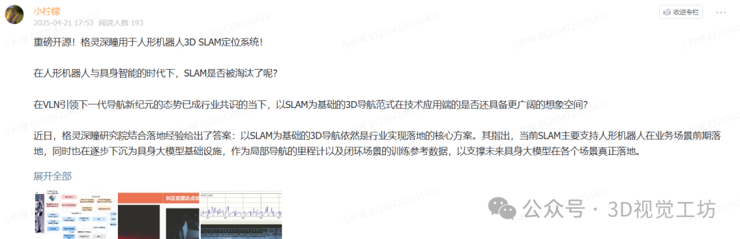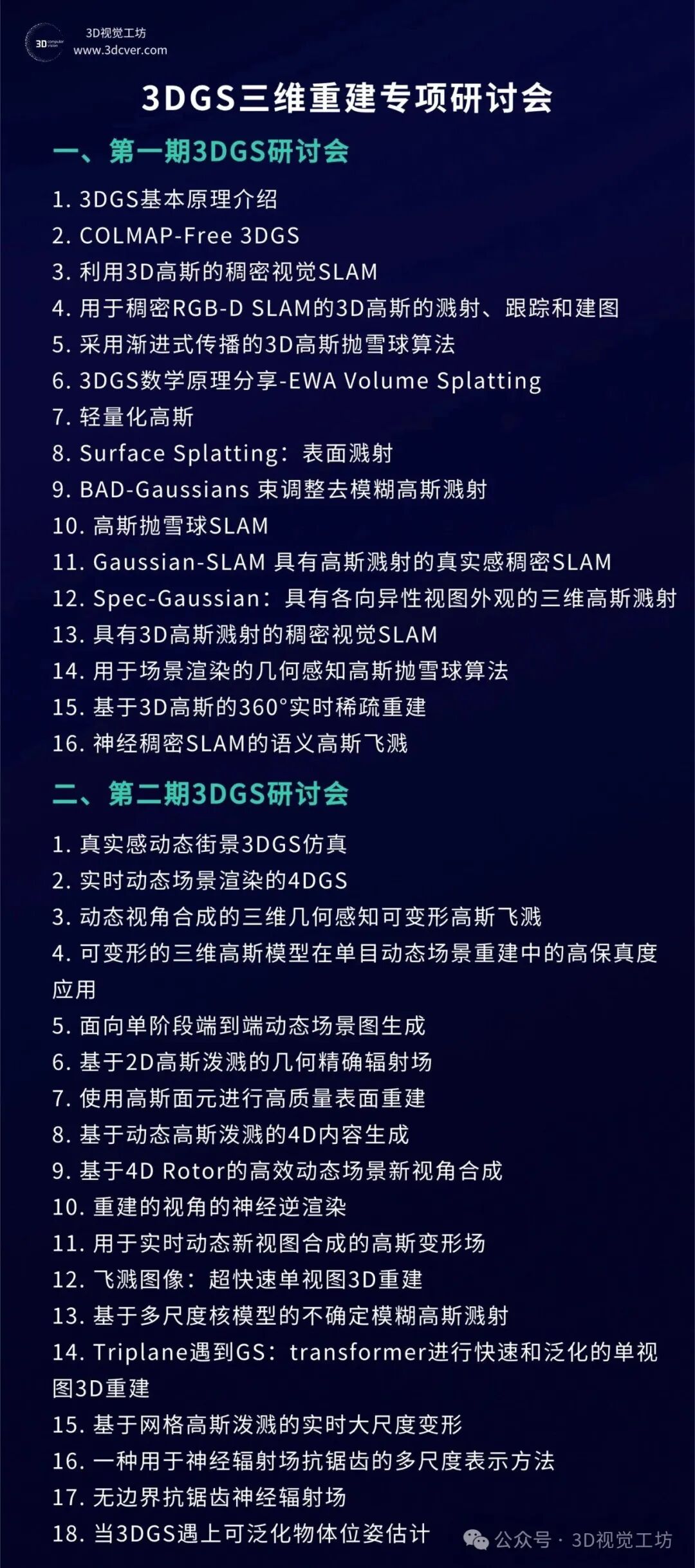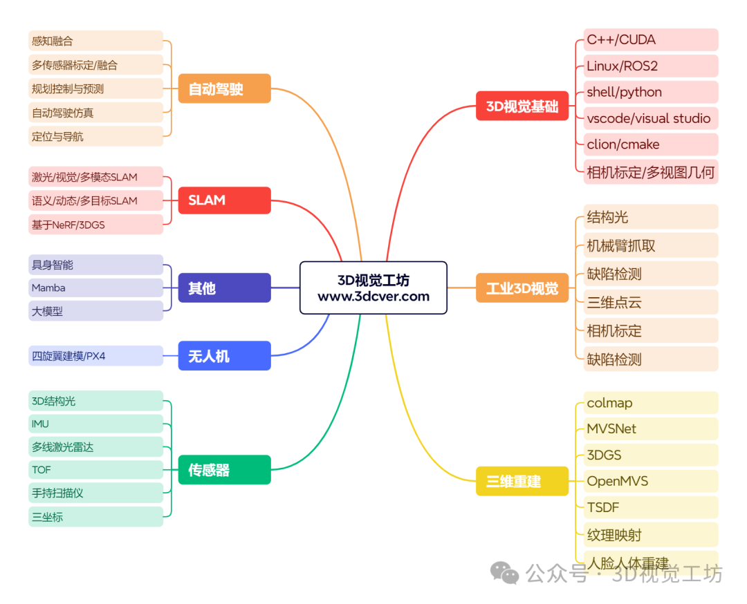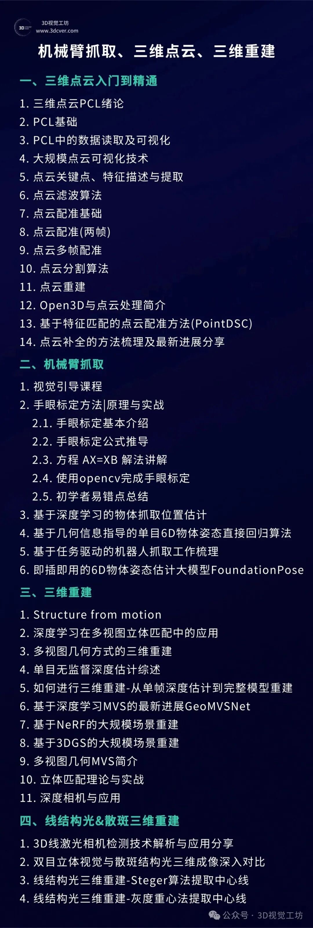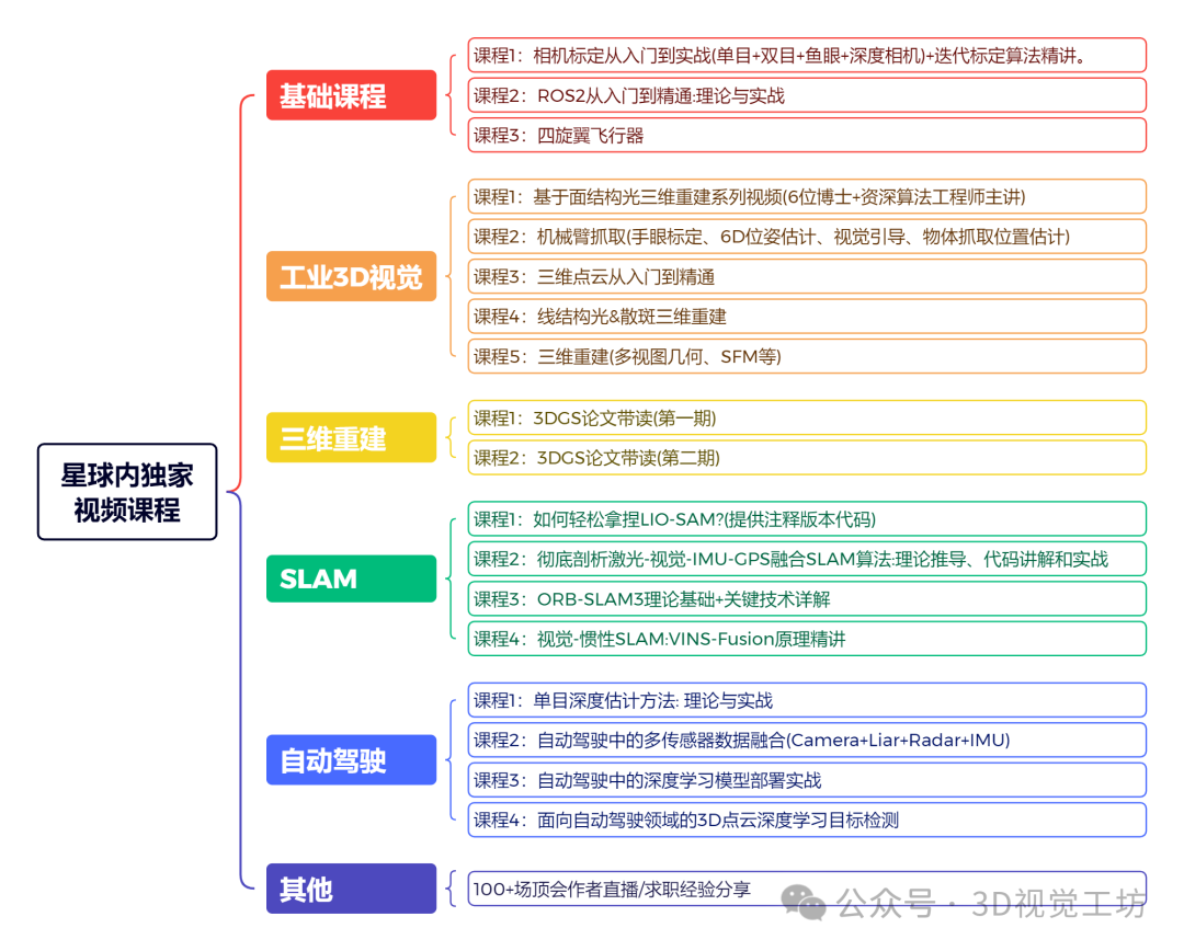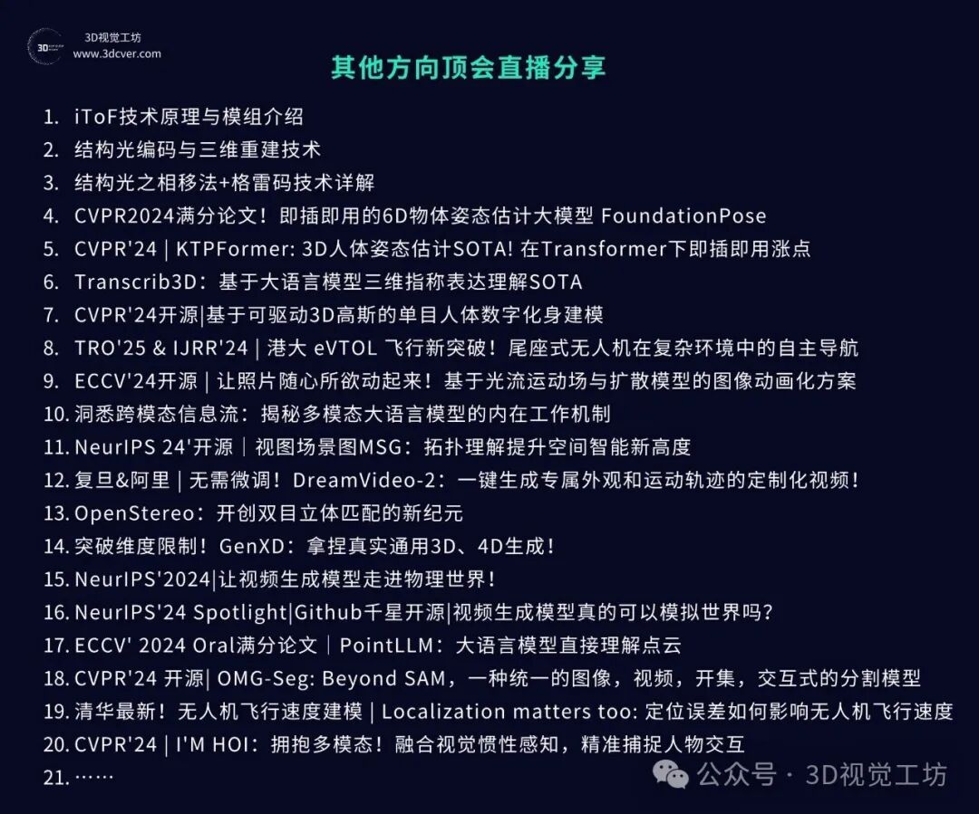 细分方向众多,包括但不限于:工业3D视觉、三维重建、自动驾驶、具身智能、大模型、扩散模型等科技前沿方向,也涉及视觉竞赛、硬件选型、视觉产品落地经验分享、学术&求职交流等。探讨科研工作难题、交流最新领域进展、分享3D视觉最新顶会论文&代码资料、分享视频(讲解3D视觉重要知识点)、发布高质量的求职就业信息、承接项目。3D视觉包含立体视觉、结构光和TOF,以立体视觉为主。目前已有6400+活跃成员,主要