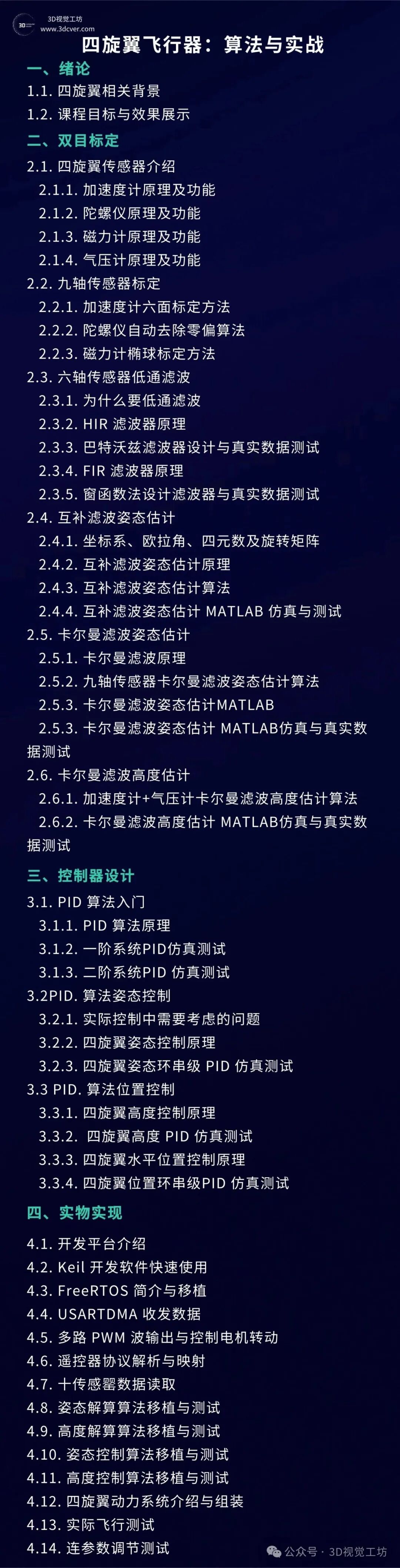 本课程主要包含两部分,分别是相机标定和3D视觉,相机标定包含单目、双目和鱼眼相机标定;3D视觉包含立体视觉、结构光和TOF,以立体视觉为主。课程提供对应数据与代码。