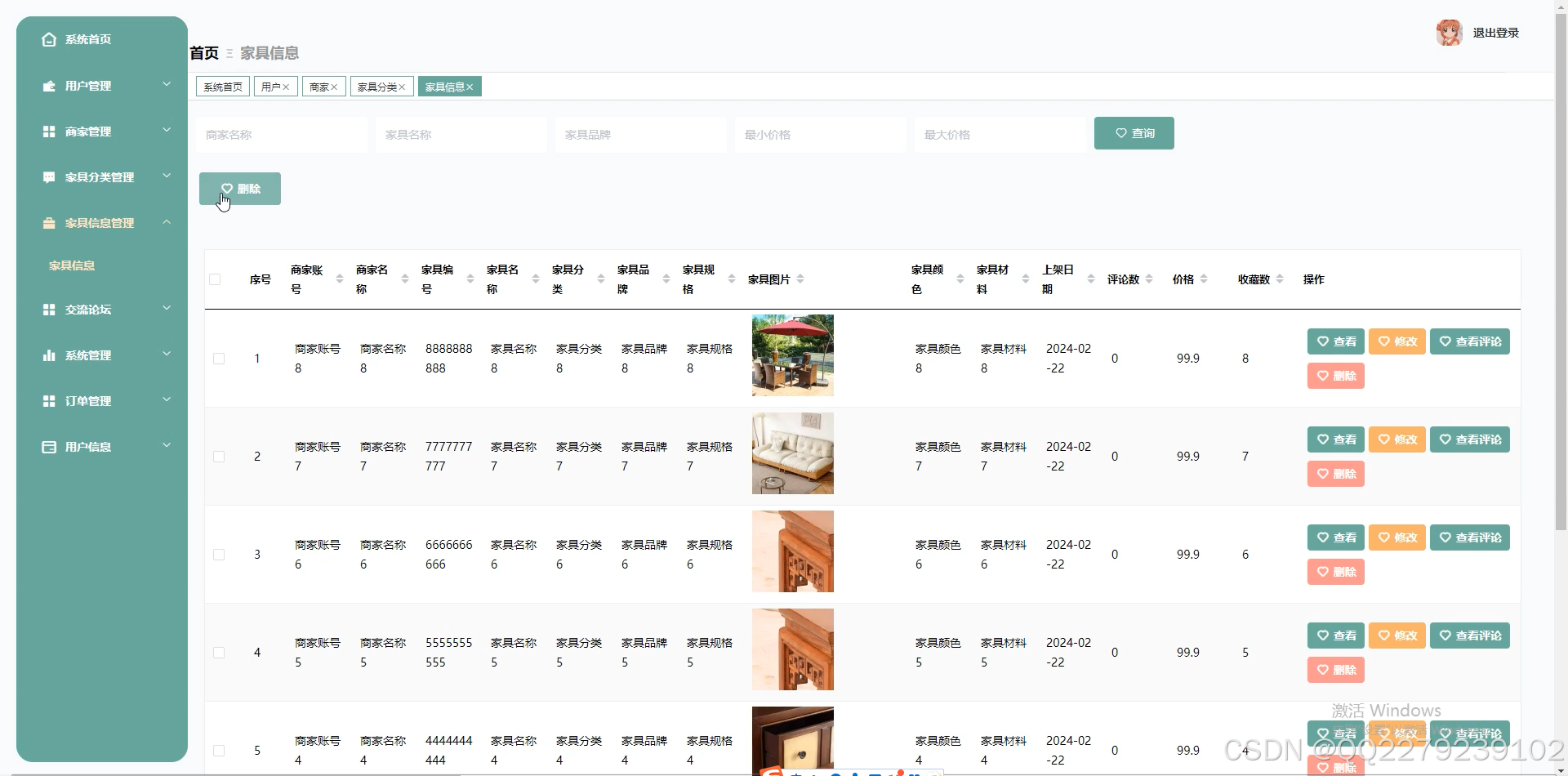 springboot基于Java的家具商城管理系统(源码+文档+运行视频+讲解视频)