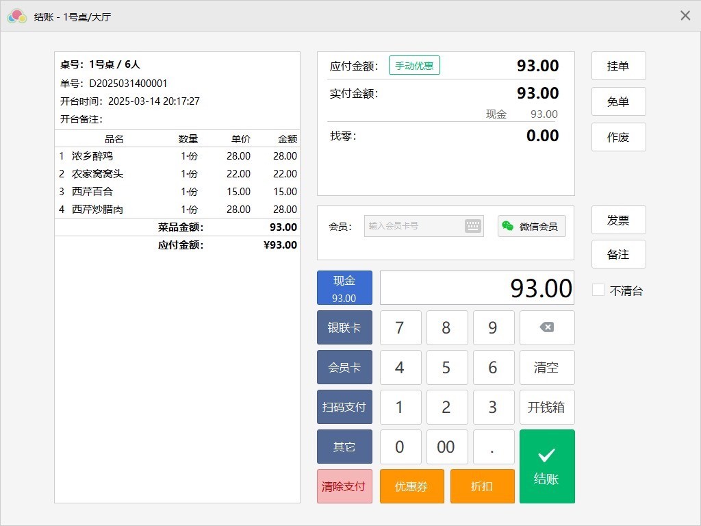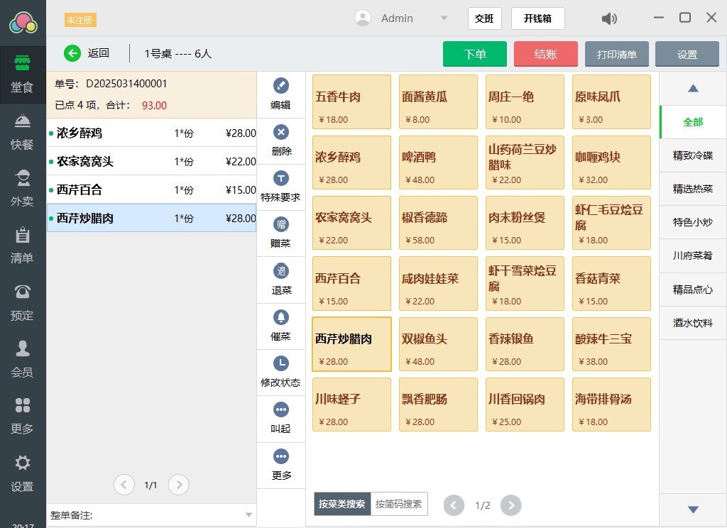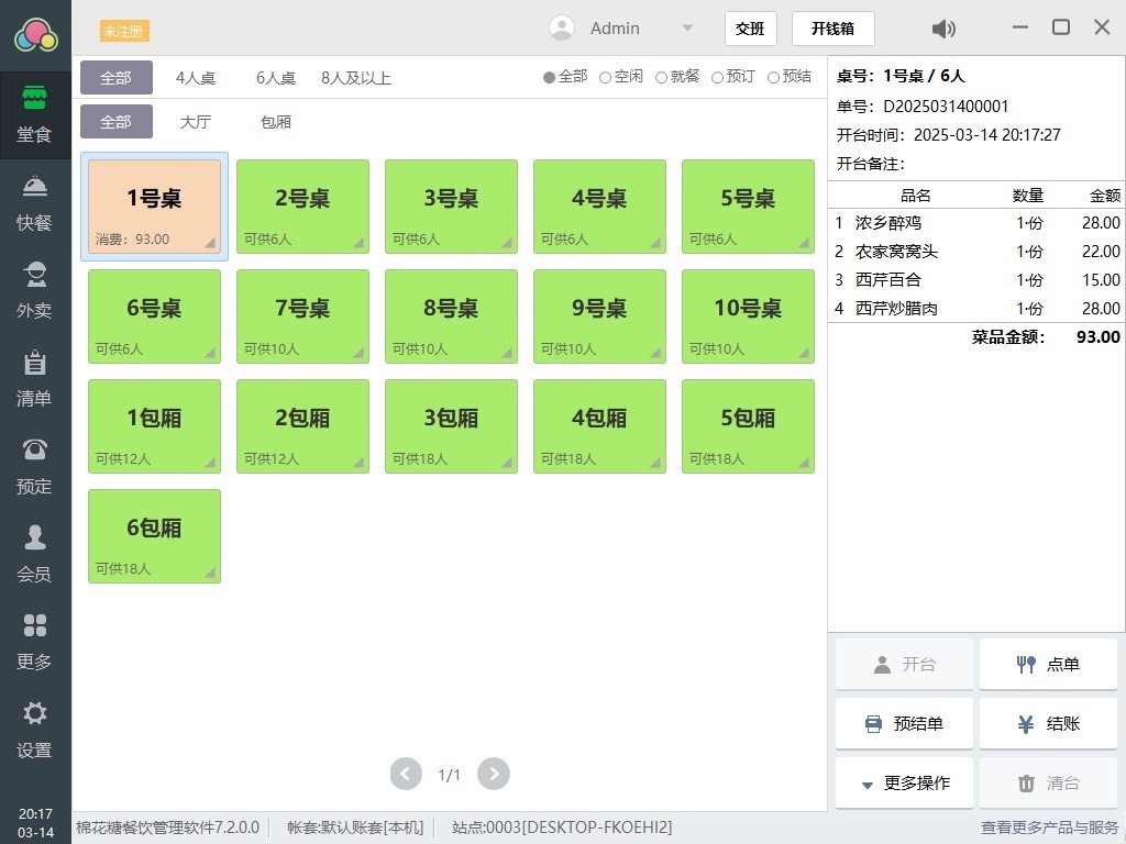 集堂食点餐、快餐结算、外卖电话接单、桌位预订、数据统计、会员信息管理、平板点菜等功能于一体,全面覆盖中小型餐厅日常运营需求。