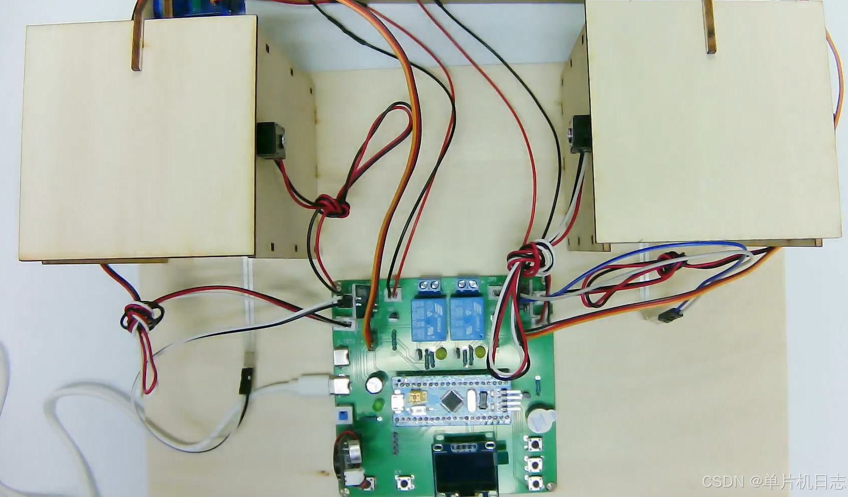 4、垃圾桶装满后做出相应打包(继电器模拟),以及蜂鸣器预警,提示工作人员丢垃圾,当垃圾桶装满时只能靠按键打开,清理完成后,正常运行