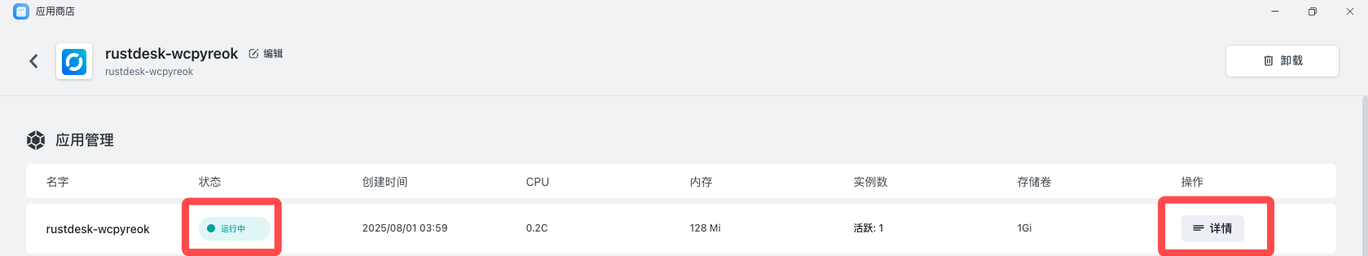 确认配置无误后,点击“部署应用”。等待大约2分钟,看到应用状态变为 Running。
