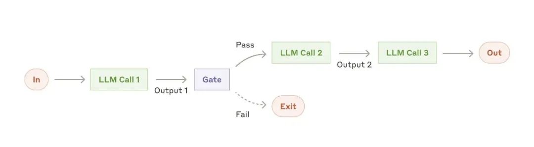 提示链(Prompt Chaining):将任务拆解成多个步骤,每一步使用LLM处理前一步的输出,并加入中间检查。适用于可以分解为固定子任务的场景。例子:将营销文案翻译成多种语言。