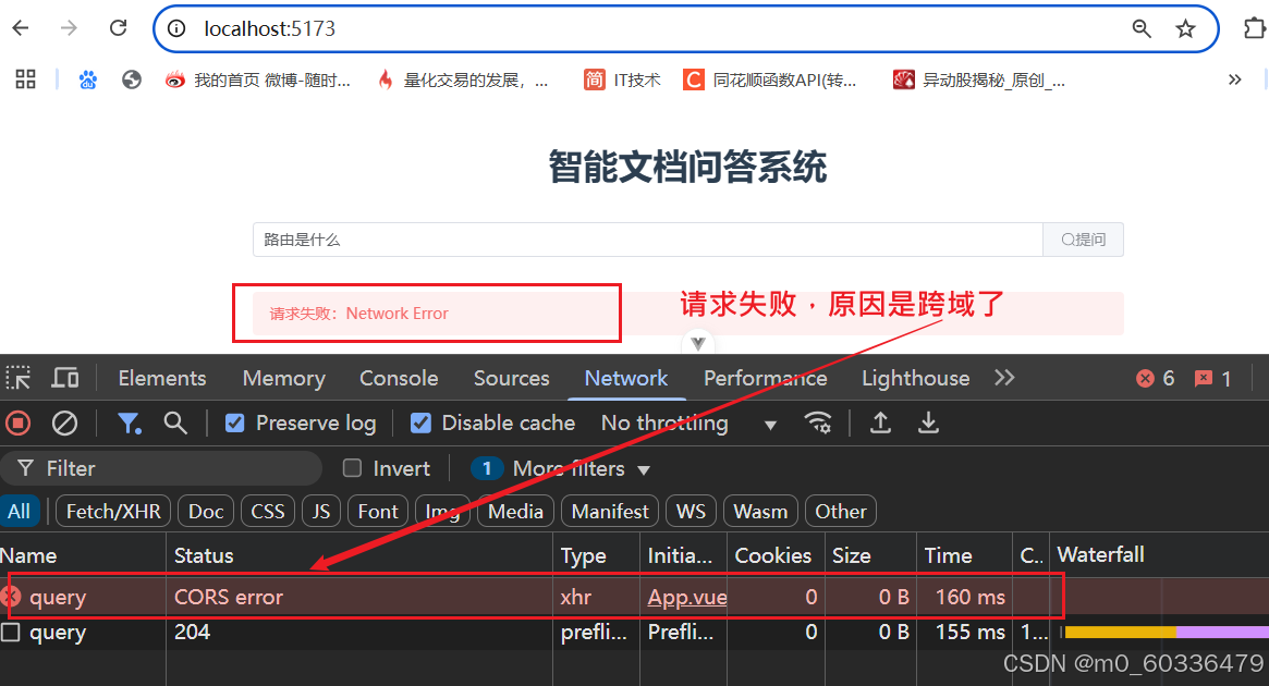 浏览器的同源策略导致,正常需在服务器端进行配置,在FastAPI配置后,问题依旧;这里,本来就是是为了测试验证,最后选择让浏览器忽略同源方式,还不好用。