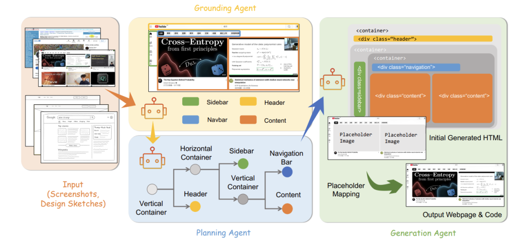 模块化框架:三智能体分工解决视觉理解、布局规划、代码生成割裂问题。
