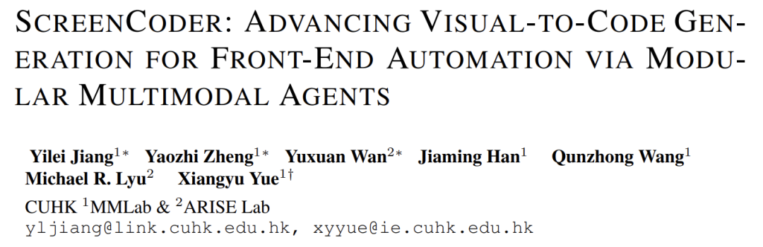 论文:ScreenCoder: Advancing Visual-to-Code Generation for Front-End Automation via Modular Multimodal Agents
