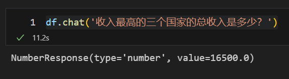初始化 PandasAI 并提问,如下所示