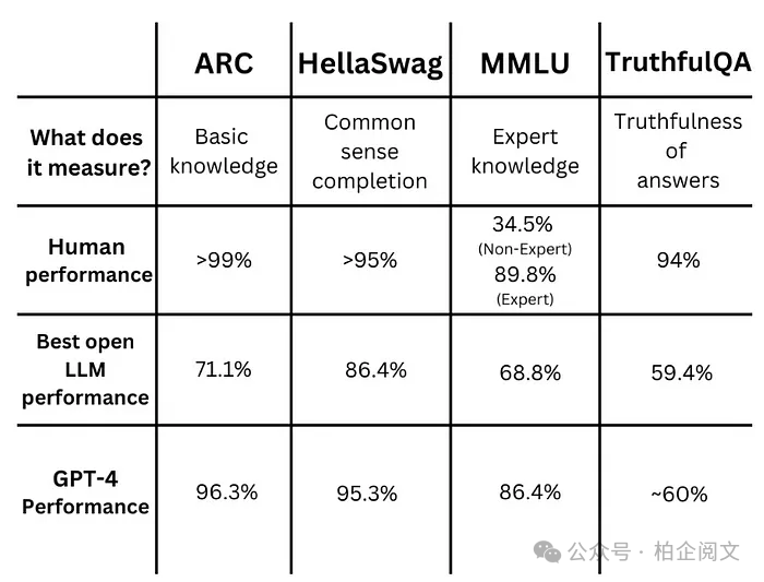 以上就是开源大语言模型排行榜的七个主要基准测试任务。这些测试不仅评估大语言模型的知识,还评估它们的推理、理解和解决问题的能力。