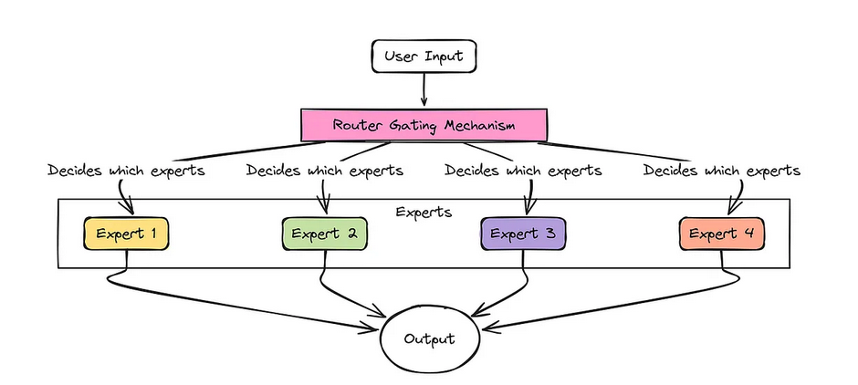 想象你接手了一项极其艰巨的工作。与其雇一个样样都懂一点的全能型员工,不如组建一支专家团队——每位专家都精通某个特定领域(比如电工、水管工、油漆工)。你还会聘请一位经理,由他根据当前任务指派合适的专家来处理。