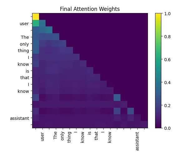 要获得最终的预测结果,我们只需要取序列中最后一个词元(token)对应的嵌入向量(embedding)。这是一个维度为 [1024] 的向量。接着,我们将这个向量与语言模型头部权重(language model head weights,该权重通常与词元嵌入层的权重共享/tied)相乘,从而得到词汇表中每个词对应的得分,也称为 logits(未归一化的预测分数)。
