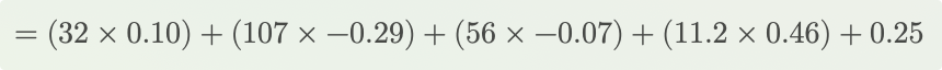 (0.10, -0.29, -0.07, 0.46) 是对应的权重。