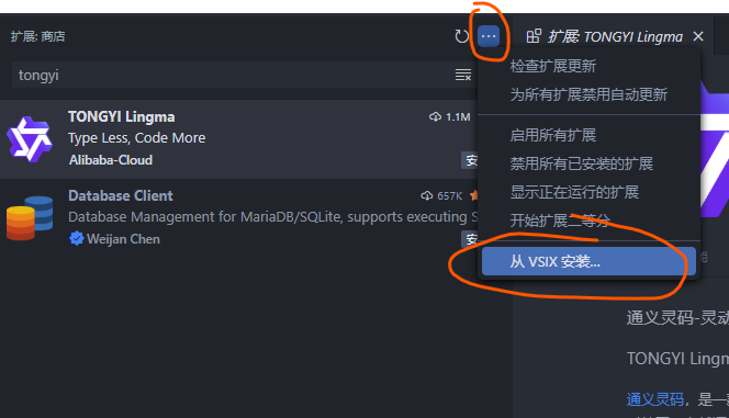 点击 “从 VSIX 安装” 按钮,选择下载好的 VSIX 文件进行安装。