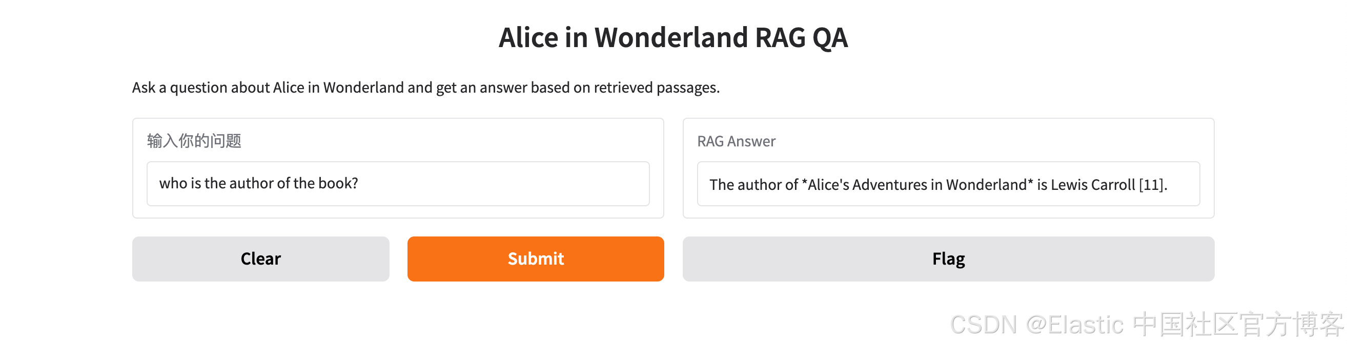 Gradio 是一个快速构建机器学习模型网页界面的工具。本文展示了如何使用 Gradio 为基于 Elasticsearch 和 DeepSeekR1 的 RAG 问答系统创建交互式界面。代码示例演示了如何设置 Elasticsearch 连接、处理语义搜索查询,并通过 OpenAI 接口生成回答。通过简单的 Gradio 界面,用户可以输入关于《爱丽丝梦游仙境》的问题,系统会从书中检索相关段落并