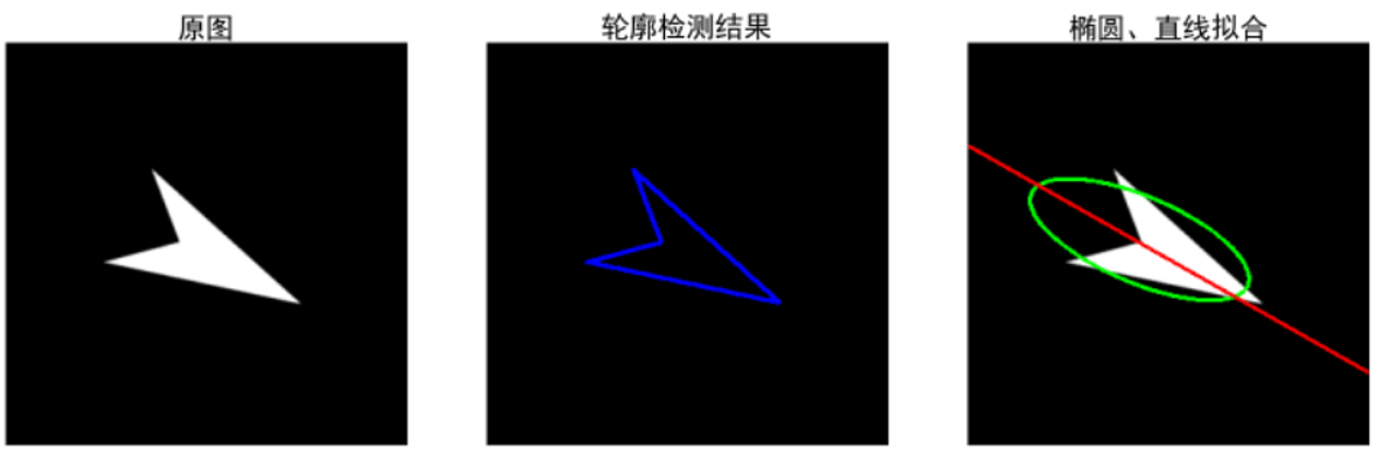 在OpenCV中,函数cv2.fitEllipse()可以用来构建最优拟合椭圆,还可以在返回值内分别返回椭圆的中心点,轴长,旋转角度信息。使用这种形式,能够直观地获取椭圆的方向等信息。